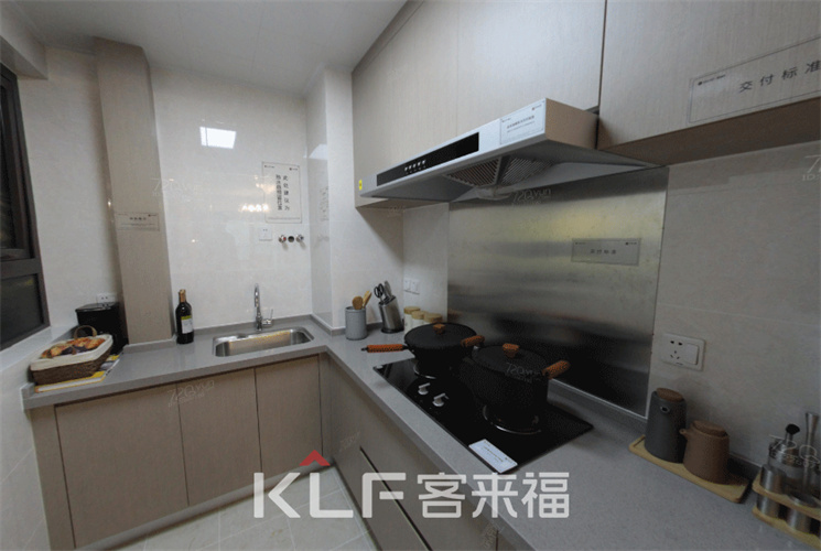 在厨房空间中,米兰·(milan)使用了原木色调橱柜搭配白色瓷砖墙面,整个空间去繁从精,让舒适、婉约的气韵慢慢融入,让下厨成为优雅的范式,简约之余又注入了东方韵味的意境。