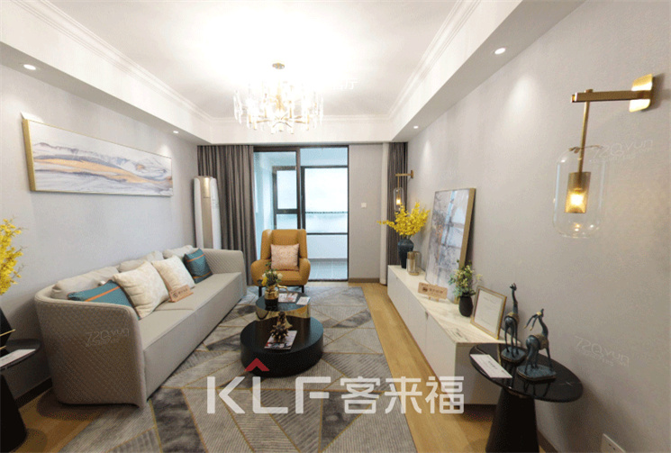米兰·(milan)在客厅空间的设计上以灰白为基调,采用大张地毯搭配空间,沙发规划出客厅场域,墙面搭配开放式电视柜,窗帘与局部的亮色软装呼应。在明亮顶灯的映衬下,木质地板的暖意慢慢散发,在白色的空间氛围中构建轻柔、舒适,心都安逸下来。