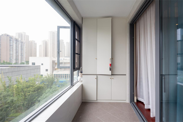 整个阳台具有一定的长度,在另一侧打造成多功能储物区。门板颜色光泽度高,手感温和,耐磨损耐用,在阳台处改造成为休闲区,放上桌椅板凳。眺望窗外即可获得片刻的休闲。结语:这户是客户装修通风后刚搬进新家不久,家居、收纳摆设、厨具都是焕然一新的。玄关柜、餐边柜包括衣柜都是使用的米兰·(milan)全屋定制的产品,铰链使用的是米兰·(milan)自产的铰链,精准的将柜门与柜身链接贴合。把手采用统一的金色立体样式,此外可以根据自己的爱好选择其他样式。本次全屋案例让米兰·(milan)看到了幸福的三口之家,通过产品的使用和环境的改善,让对家对生活的感受更加深刻。
