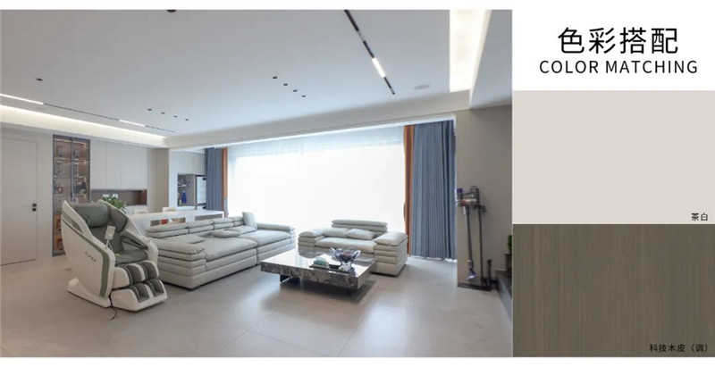 这户案例通过茶白这款色彩在不同场景中的运用,以特调的棕色去进行点缀;推敲每一处细节设计,最终让房子变成简约不减“美感”的温馨之家。