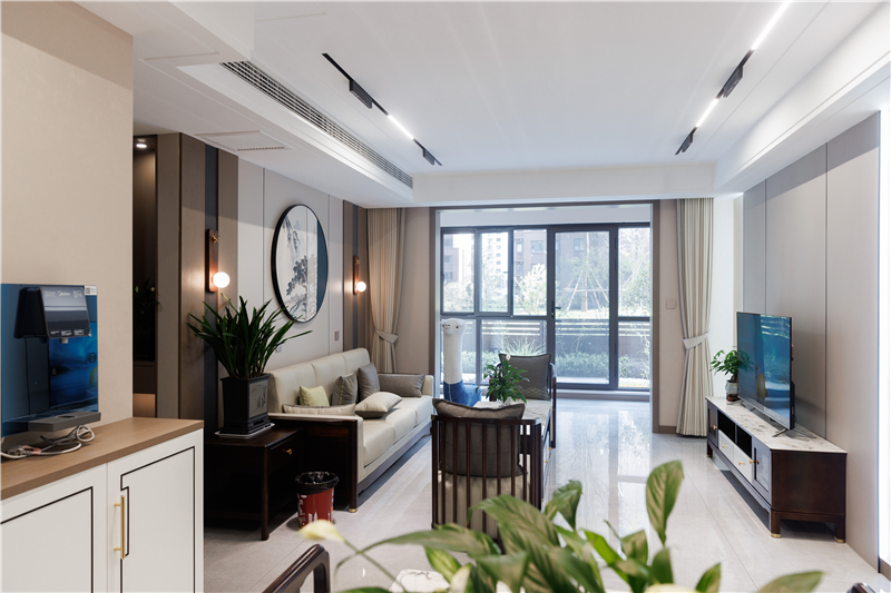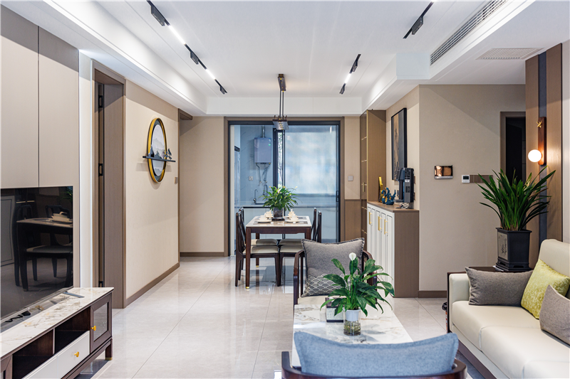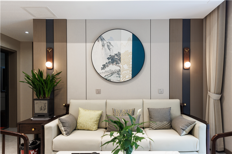 恰到好处的生活是别样的精致,进到客厅,无主灯设计简约舒适;新中式的特点让客厅精致又不会显得繁杂,中式元素干净利落的融入,让整个空间也成为一道风景。