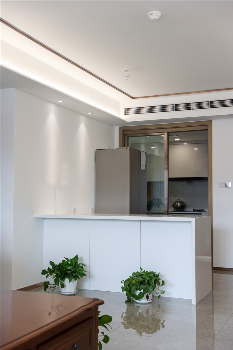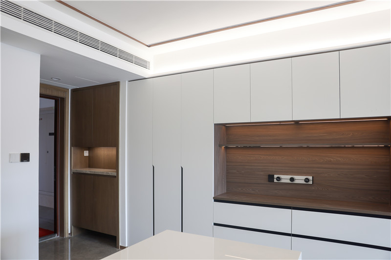 一面到顶玄关柜作为缓冲区,让主人卸下白天奔波的沧桑,迎接温暖治愈的家空间。