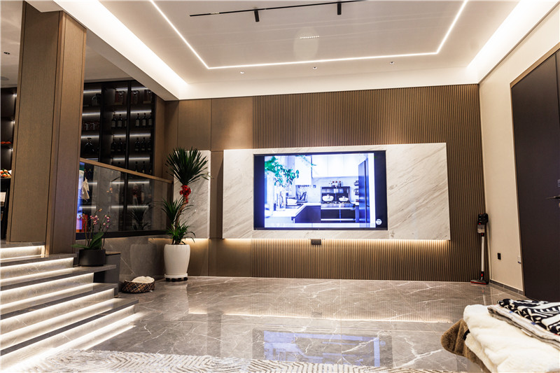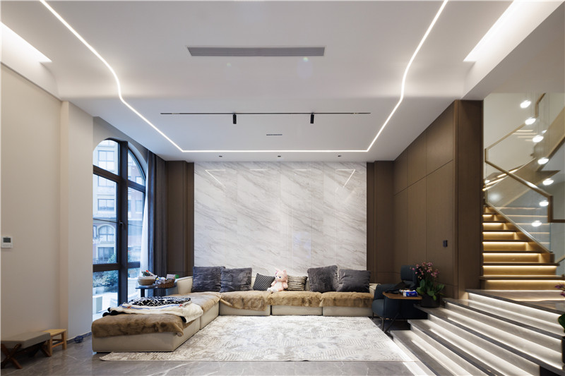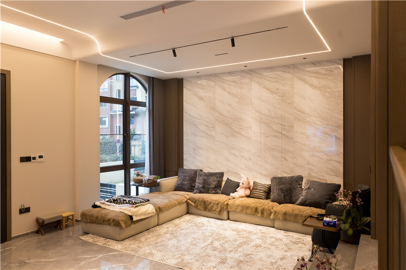 没有采用繁复的装饰物来营造轻奢氛围,更多利用设计与灯光去巧妙体现家居“奢”的氛围,体现精简的设计理念。