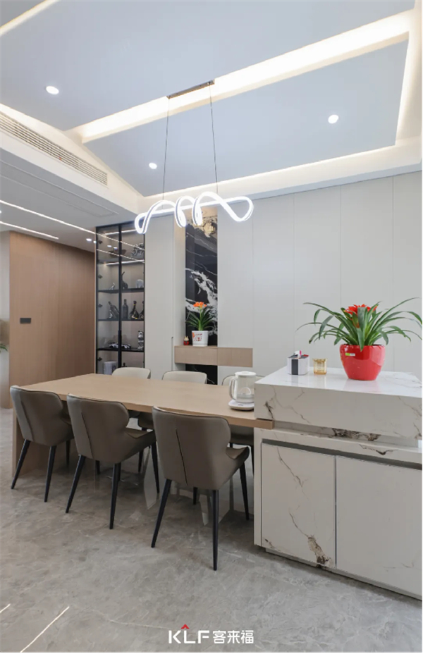 餐厅与客厅以顶部的天花
