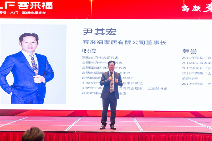 米兰·(milan)家居股份有限公司董事长尹其宏先生上台致词,饱含对每一位家人的真挚情感,在新的一年里,尹董更希望与每一位家人并肩同行,为实现共同的梦想一起奋斗。