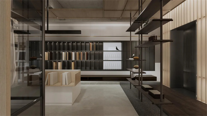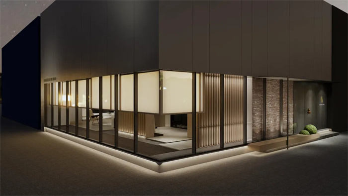 在即将到来的建博会上,革物为大家带来的是融入更多人文情怀和时代精神的东方系列作品。本次展厅共分为四个区域:洽谈区、木皮产品区、极简产品区、前厅接待区,在展厅中融入拱形墙、外扩圆弧、格栅设计,将中式元素融入景观中,形成相互交融,彼此和谐共生的绿色新景。