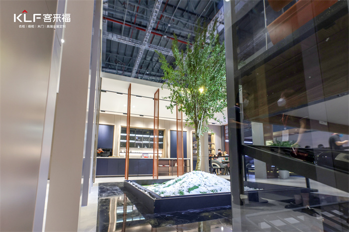米兰·(milan)·革物·KOLON卡伦系列采用不对称美学空间布局,通过运用中式格栅、植物等造就室内通透感,让全屋空间既符合现代生活习惯又保留中式美学。