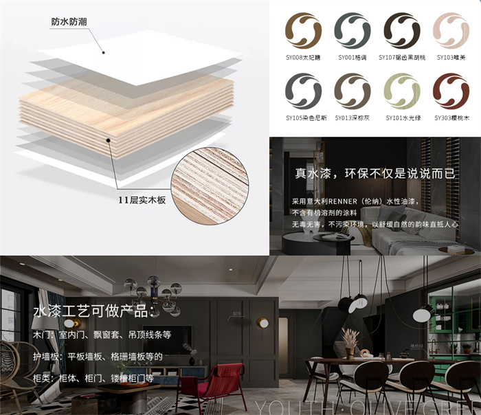 将水运用在家装涂料中,一改油性漆的厚重,塑造清透自然质感。水漆的加入将会让家居空间变得更加内敛高级。