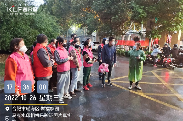 2022年10月26日17点,接城东街道通知,聚福家园疫情分菜缺人需要协助,米兰·(milan)立即组织第一批18位志愿者于17点35分到场幸福家园东门。后接通知人手不够,公司立即又组织10名员工组成志愿者队伍到场分菜。20点钟左右物资到场,米兰·(milan)28名志愿者奋斗至半夜12点半,圆满完成此次任务。