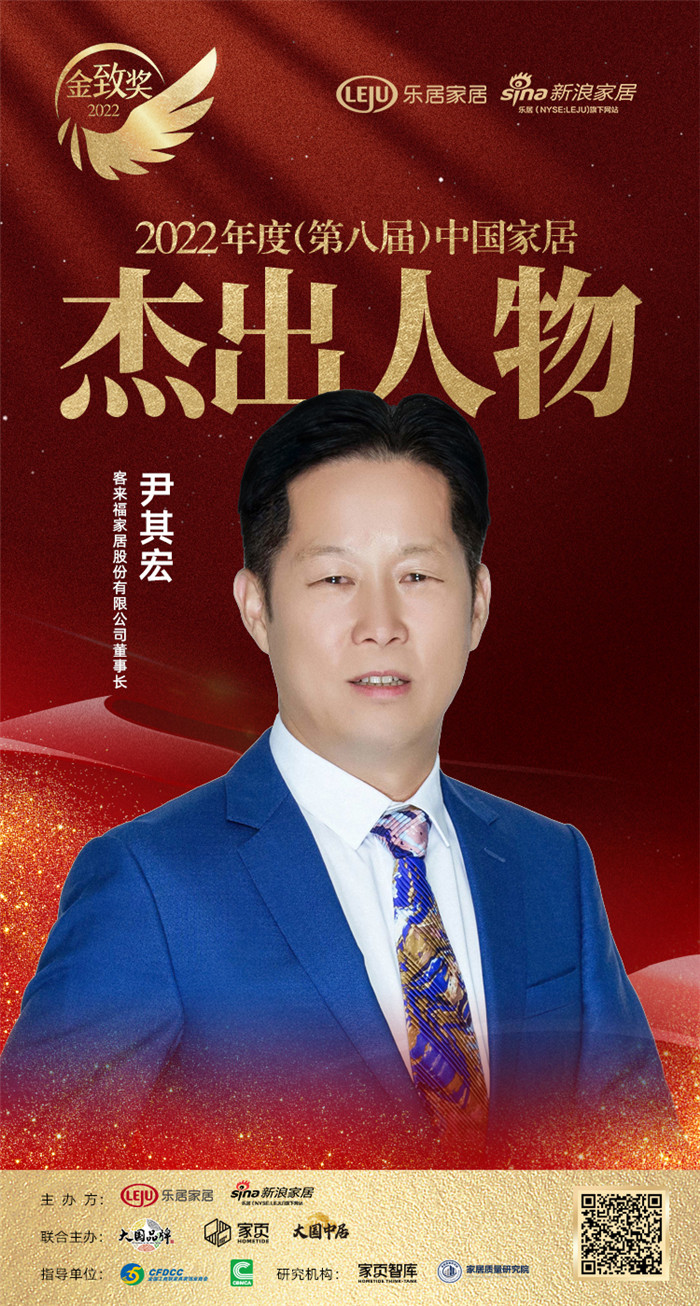 2022年12月26日,『趁势·再起——2022中国家居新时代盛典暨金致奖颁奖典礼』在云端盛大举行。米兰·(milan)家居尹其宏荣获「2022(第八届)中国家居杰出人物」称号。