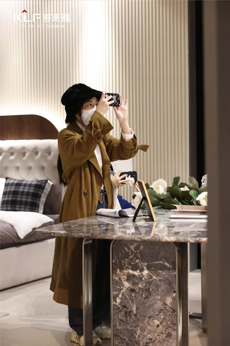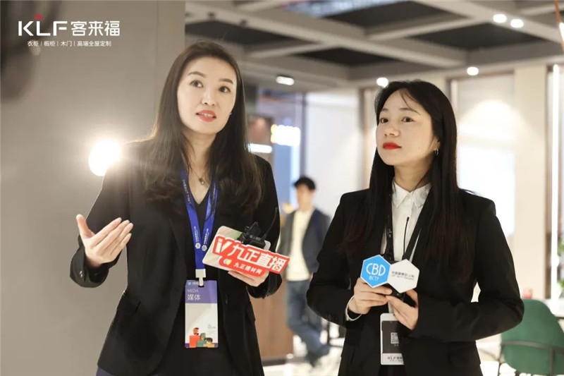 除了传统形式,居美·中华衣柜网还特别邀请尹董与记者互动逛展,尹董带领记者在展馆内感受新品品质,进一步解析米兰·(milan)·革物·翰墨的美学设计理念。