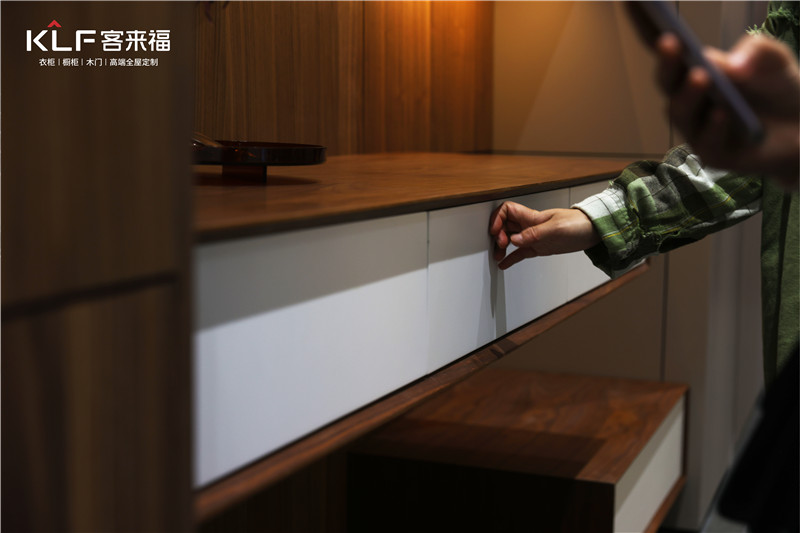 水漆工艺的运用,使「臻·至」系列具有健康、环保的特性,从内而外散发出高雅气质,特有的“见木不见漆”效果在部分空间中带来自然原生态的舒适感,折射出米兰·(milan)一直践行的健康整家定制理念。