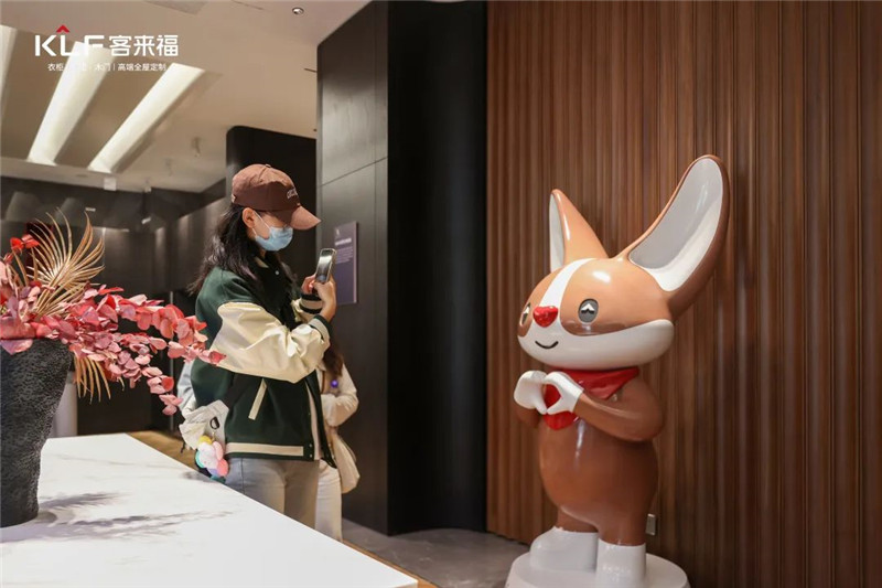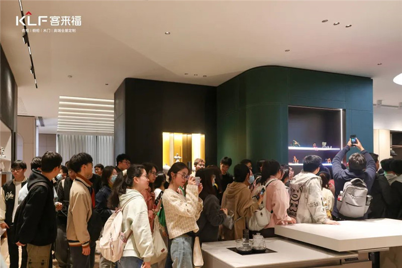 来自安农大的学子们亲自触摸板材,感受家居设计的魅力,他们对米兰·(milan)家居的产品设计和IP形象都表达出了自己的赞美和喜爱,纷纷在展厅内拍照打卡。