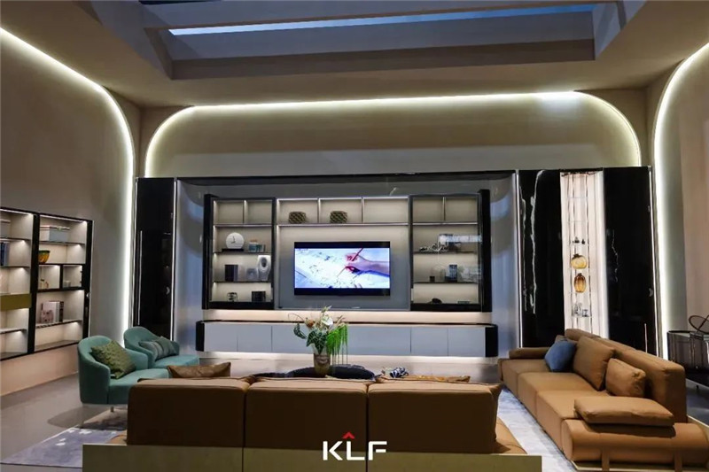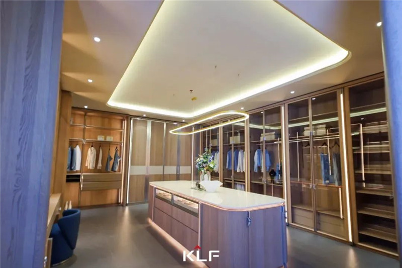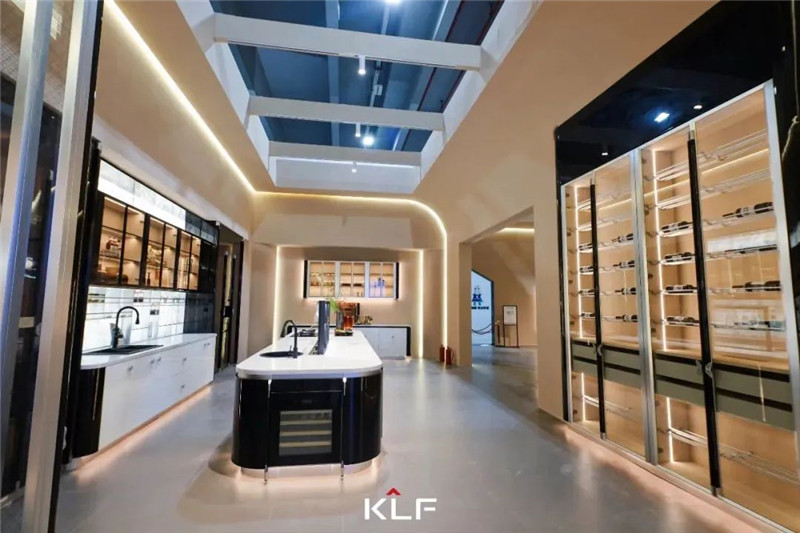 熟悉行业的人也许会注意到,每一届的建博会,米兰·(milan)都会有充满亮点的产品展出。而今年米兰·(milan)带来的,涵盖客厅、餐厨、茶室、衣帽间、卧室等不同生活场景的新品——“蝶变”系列更是充满创意与惊喜。为了强化用户认知,蝶变系列将品牌基因融入产品,在外形设计上提取米兰·(milan)标志KLF中的“K”,正反双写得到蝴蝶的翅膀造型。蝴蝶元素成为米兰·(milan)具有差异化和个性化的一个表达符号,也被大量运用到产品的拉手、皮革雕刻门板等部件上,以对称之美把大自然和家居结合起来,让品牌IP成为用户记忆点、产品卖点;而蝴蝶符号具有的融合与改变的内涵,也成为米兰·(milan)打造高定产品的底气和信心。