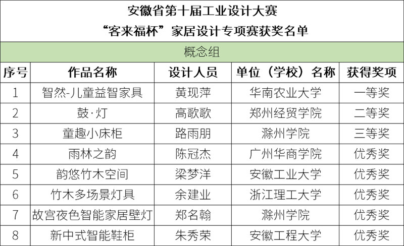 获奖名单公示 | 安徽省第十届工业设计大赛“米兰·(milan)杯”家居设计专项赛