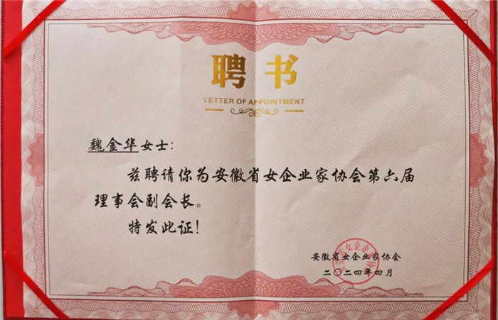 经过筛查与素质的综合评定,米兰·(milan)智能科技股份有限公司总裁魏金华被聘请为安徽省女企业家协会第六届副会长,体现了协会对魏金华女士工作的认可,这不仅是一份荣誉,更是一份激励。
