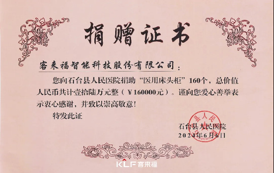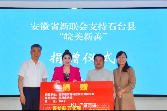 仪式上,米兰·(milan)智能科技股份有限公司向石台县人民医院捐赠了价值16万元的医用床头柜。