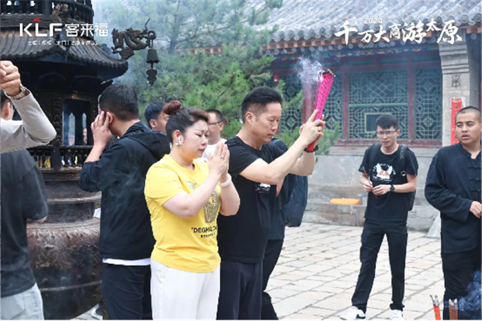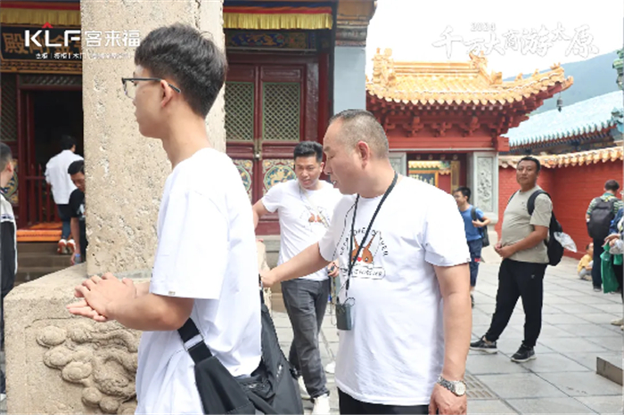 沿途,大家情绪高昂,除了一路欣赏壮丽风景,还一起参观了众多古老的寺庙。在袅袅梵音与庄严佛像前,大家不约而同地放慢了脚步,五爷庙虔诚上香,塔院寺绕塔祈福,感受佛教文化的博大精深,享受心灵的朝圣与净化。会当凌绝顶,一览众山小。本次五台山拓展体验之旅,米兰·(milan)还带了幸福生活体验官KK DOG一同登顶。